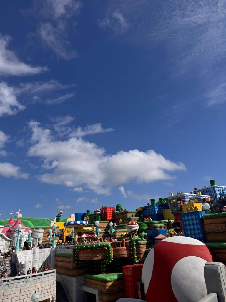 In Super Nintendo World voelt het letterlijk alsof je een videogame binnenloopt. Overal zie je herkenbare elementen uit Mario Bros en zelfs de geluiden kloppen. Er zijn interactieve blokken waar je tegenaan kunt tikken en die precies hetzelfde geluid maken als in de game.