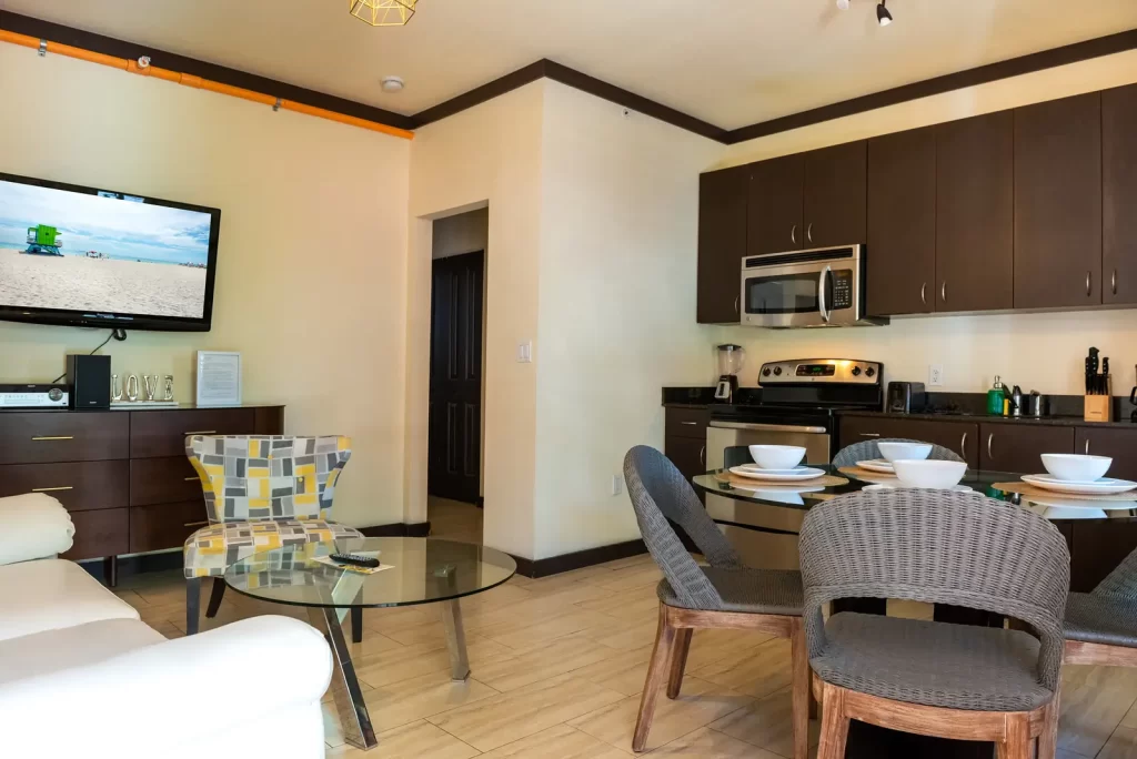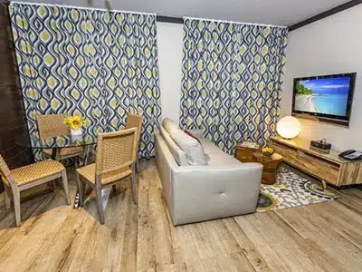 De One Bedroom Suites bieden een ruime woonkamer met een slaapbank, een volledig uitgeruste keuken en aparte ‘Master Bedroom’ met badkamer.