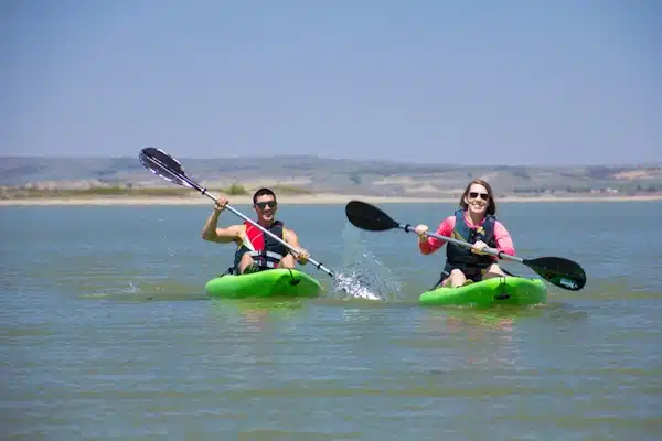 Voor degenen die van watersport houden, biedt Lake Sakakawea een overvloed aan mogelijkheden. Zeilers kunnen zich laten meevoeren door de zachte wind, terwijl kajakkers en kanoërs de rustige inhammen kunnen verkennen. Het meer is ook een populaire bestemming voor sportvissers, met een overvloed aan vissoorten zoals snoekbaars, snoek en forel. Werpen vanaf de kust of vissen vanaf een boot, de visserijmogelijkheden zijn eindeloos.